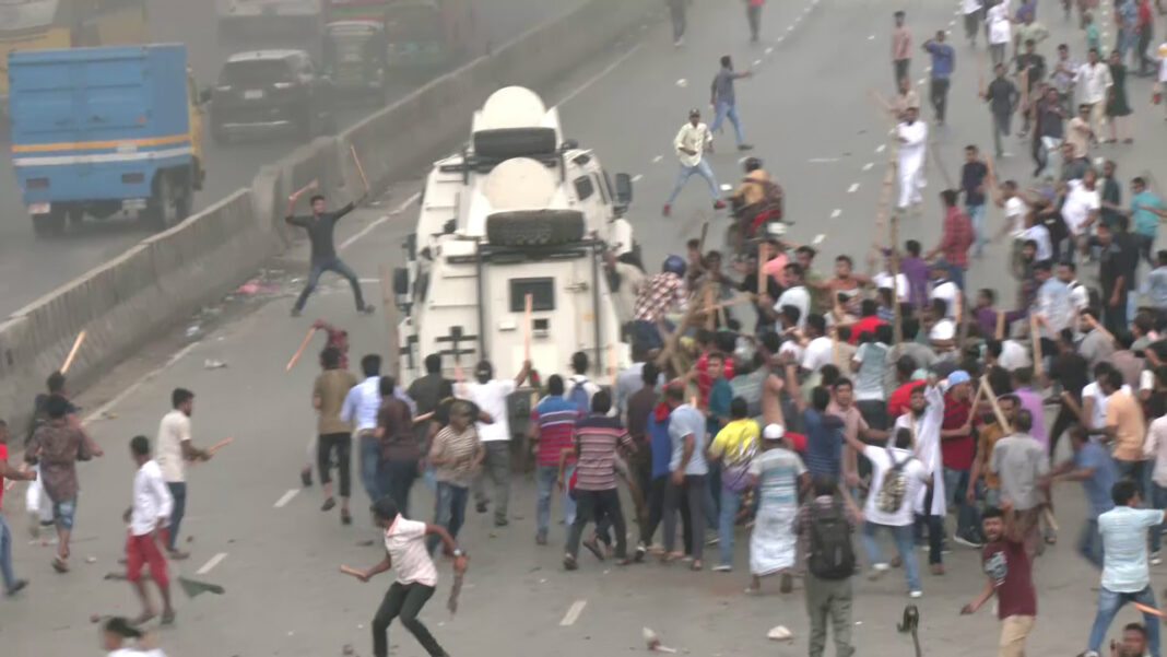 এ সময় পুলিশকে একের পর এক কাঁদানে গ্যাসের শেল ছুড়তে দেখা যায়।